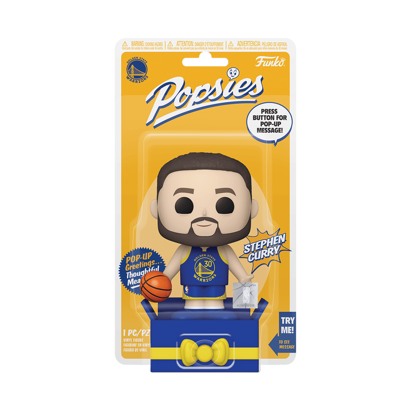 Удивите друга или любимого человека открытым объятием и всплывающим поздравлением с POPsies, новым коллекционным поздравлением от Funko! Нажмите на центр банта, и специальное сообщение появится над баскетболистом Golden State Warriors Стефом Карри, который широко раскинул руки с баскетбольным мячом в руках.