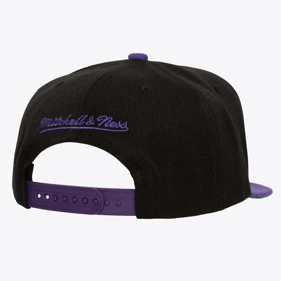 Черная бейсболка с фиолетовыми акцентами Mitchell & Ness Black Toronto Raptors Hardwood Classics Rise Up Snapback Hat в ретро-стиле имеет застежку-защелку сзади для регулировки, вышитый логотип команды Рэпторс, бренда Mitchell & Ness сзади и прямой козырек для максимального стиля. Бейсболка выполнена из 100% полиэстера с зеленой нижней частью козырька.- Цвет: Черный