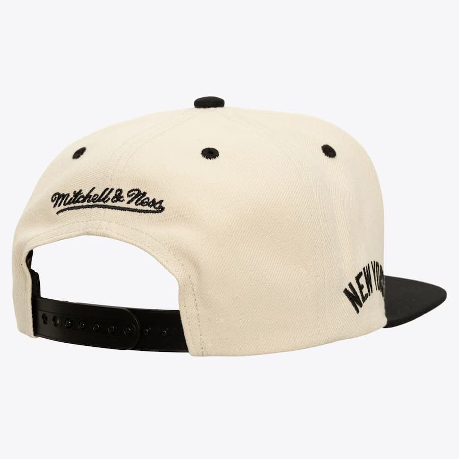 Бейсболка Mitchell & Ness Cream Black New York Yankees Logo Snapback Hat