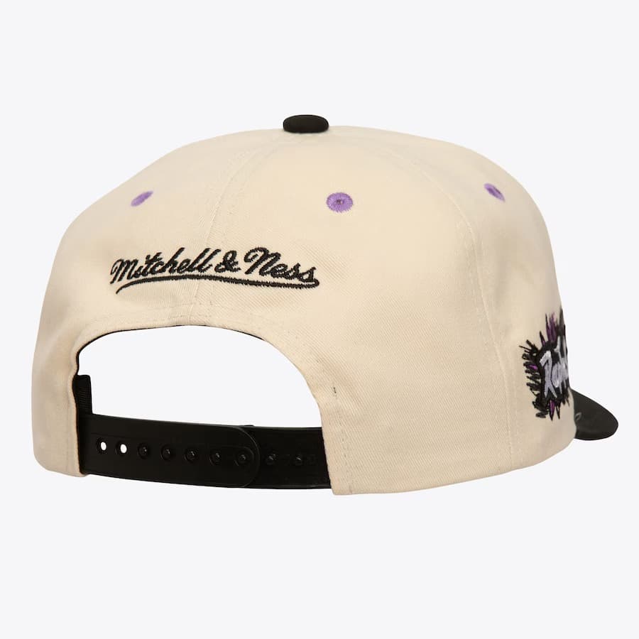 Кремовая бейсболка Mitchell & Ness White Toronto Raptors Hardwood Classics Flipped Pro Snapback Hat в ретро-стиле имеет застежку-защелку сзади для регулировки, вышитый логотип команды Торонто Рэпторс, бренда Mitchell & Ness сзади и загнутый черный козырек для максимального стиля. Бейсболка выполнена из хлопка с фиолетовой нижней частью козырька.- Цвет: Кремовый