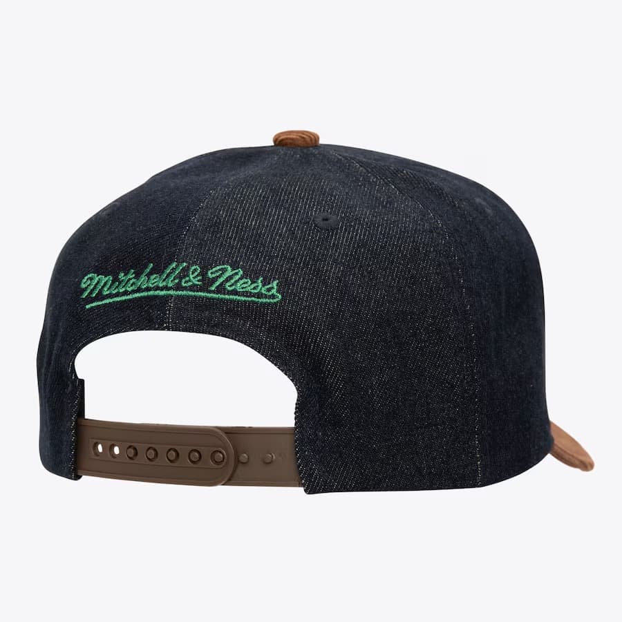 Темно-синяя бейсболка с зелеными акцентами Mitchell & Ness Denim Brown Dallas Mavericks Corduroy Hardwood Classics D-Stressed Pro Snapback Hat в ретро-стиле имеет застежку-защелку сзади для регулировки, вышитый логотип команды Мэвс, бренда Mitchell & Ness сзади и загнутый козырек для максимального стиля. Бейсболка выполнена из уникального сочетания кордуры и денима.- Цвет: Темно-синий