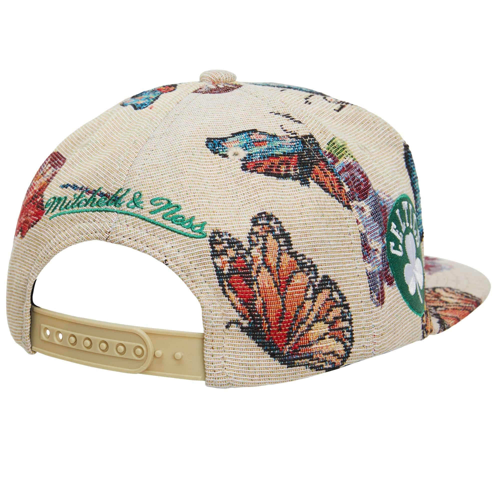 Бежевая бейсболка с графикой бабочек Mitchell & Ness True Tap Snapback Boston Celtics Hat в ретро-стиле имеет застежку-защелку сзади для регулировки, вышитый логотип команды Boston Celtics в виде лепрекона, бренда Mitchell & Ness сзади и прямой козырек с символикой клуба для максимального стиля. Бейсболка выполнена из 100% полиэстера с зеленой нижней частью.- Цвет: Бежевый