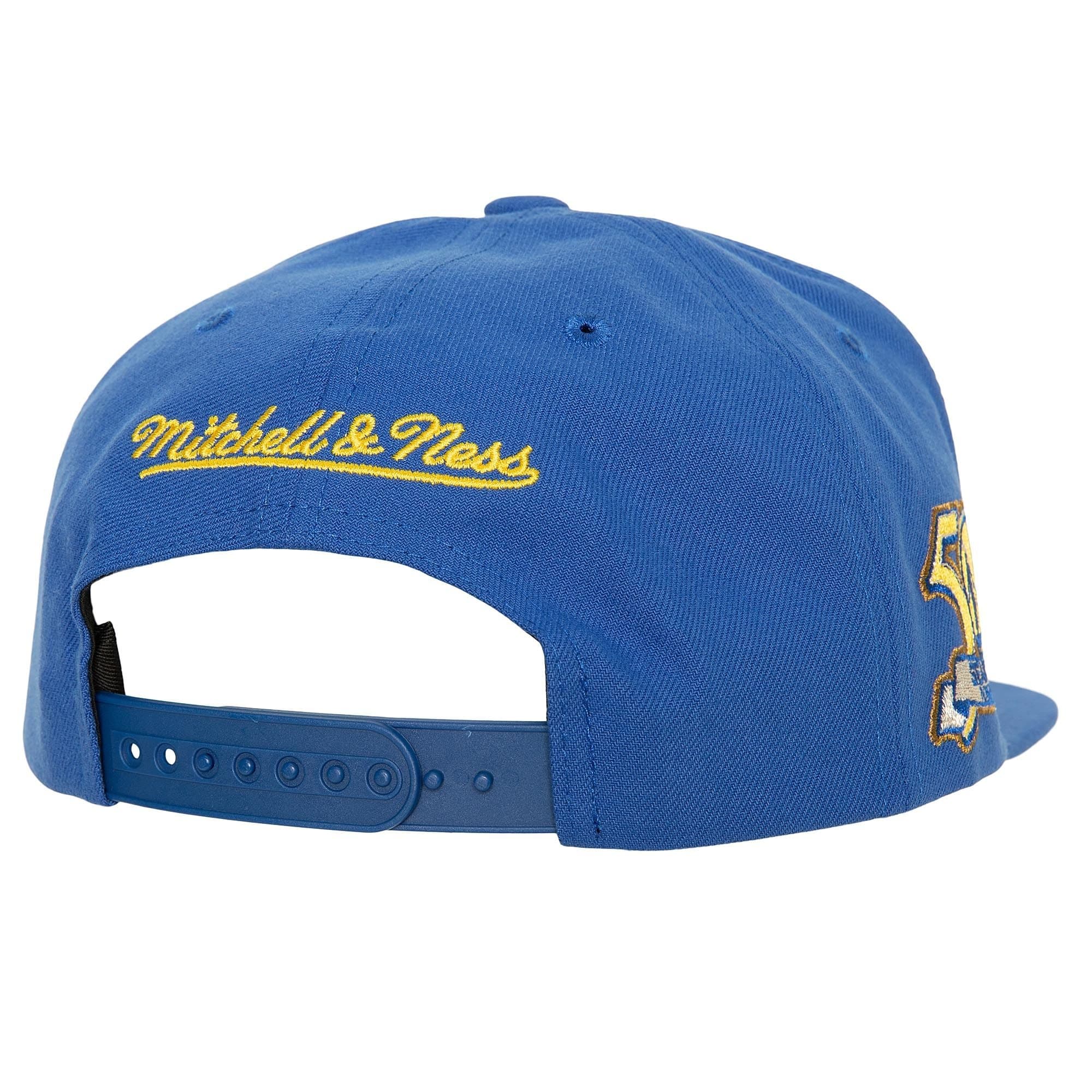 Cиняя бейсболка Mitchell & Ness Watch Me Shine Snapback HWC Golden State Warriors Hat в ретро-стиле имеет застежку-защелку сзади для регулировки, вышитый логотип команды, логотип 50-ти летия клуба, логотип бренда Mitchell & Ness сзади и прямой козырек для максимального стиля. Бейсболка выполнена из полиэстера с желтой нижней частью козырька.- Цвет: Синий