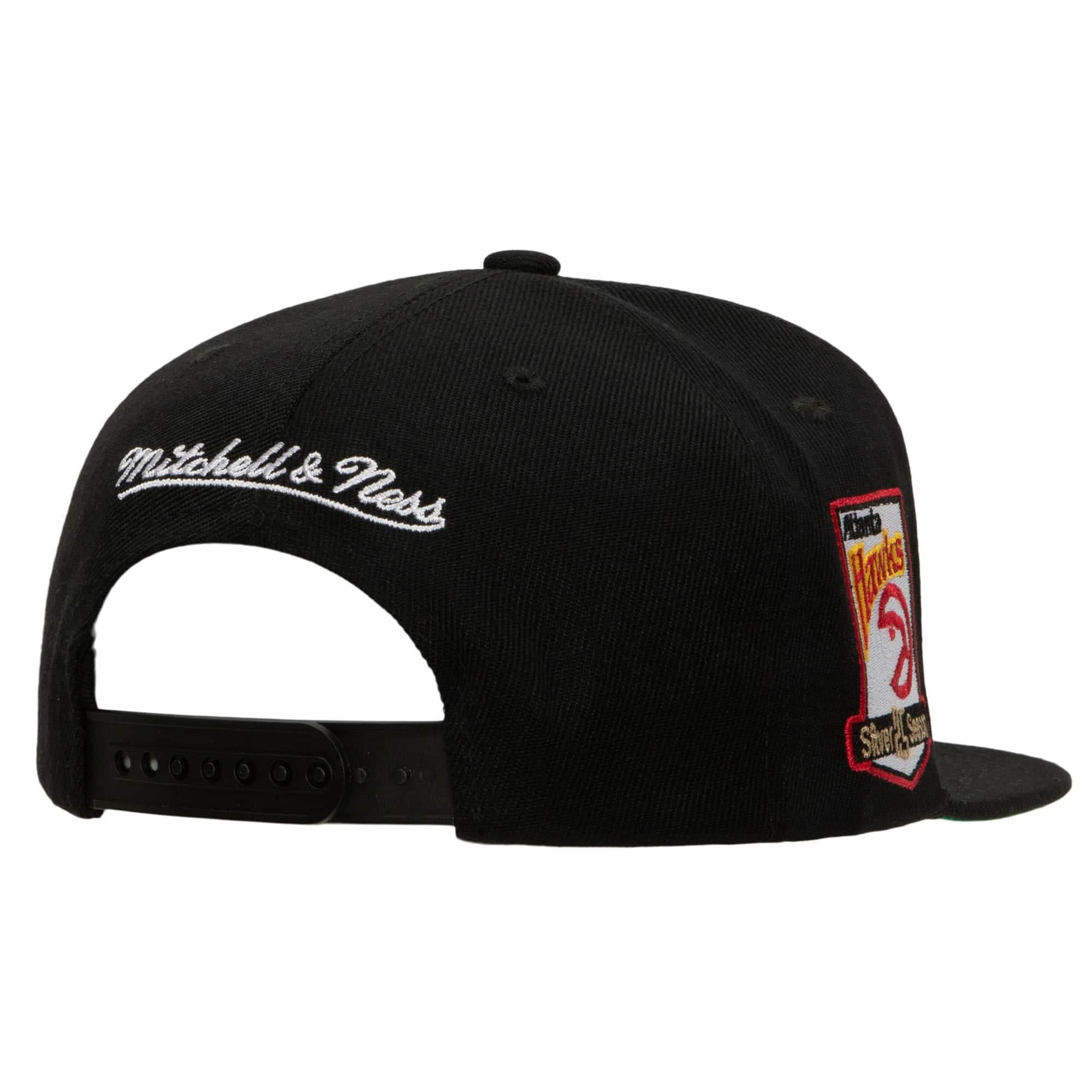 Черная бейсболка Mitchell & Ness My Squad Snapback HWC Atlanta Hawks Hat в ретро-стиле имеет застежку-защелку сзади для регулировки, вышитый логотип команды Atlanta Hawks спереди и Матча Всех Звезд 2003-го года, бренда Mitchell & Ness сзади и прямой козырек для максимального стиля. Бейсболка выполнена из 100% полиэстера с контрастной зеленой нижней частью козырька.- Цвет: Черный