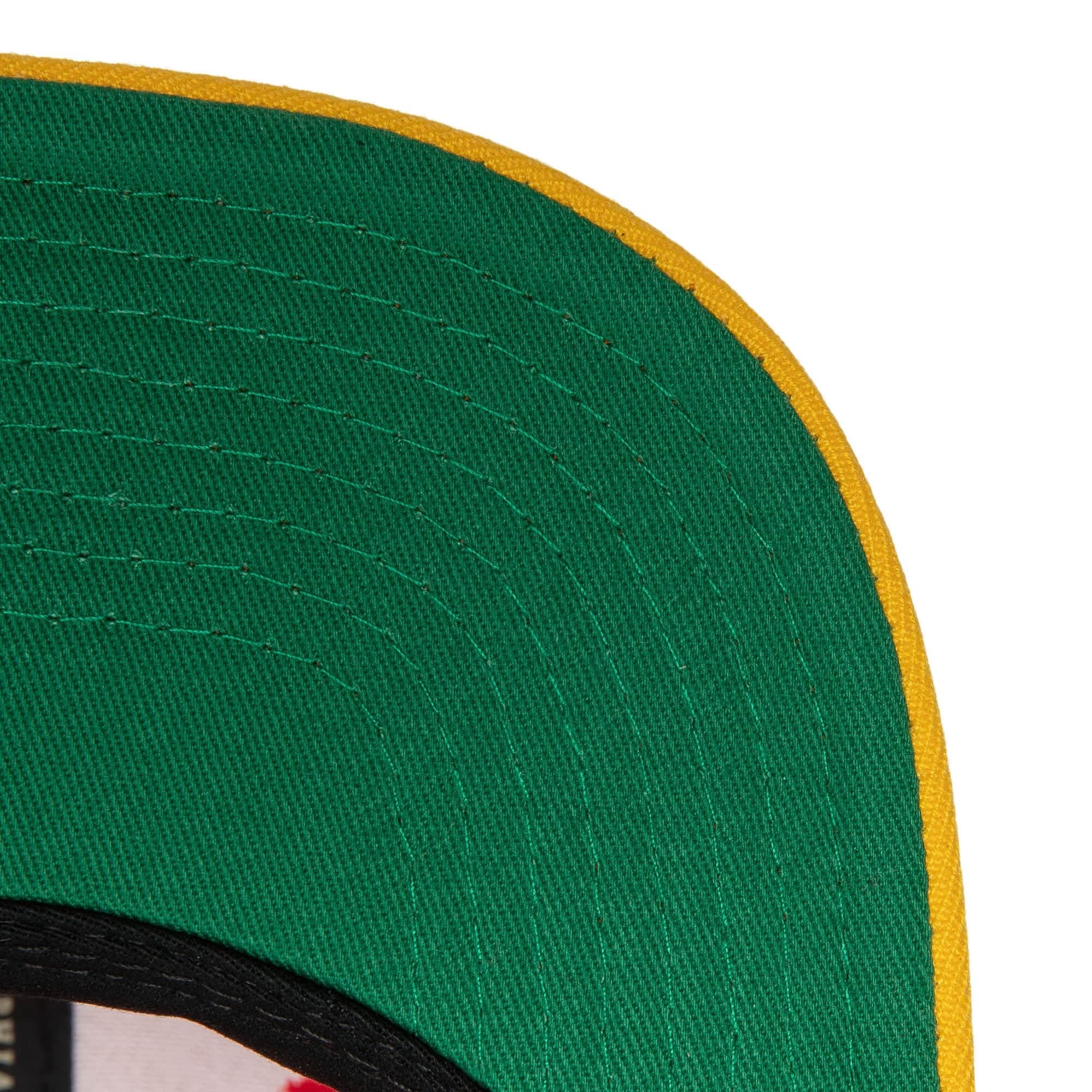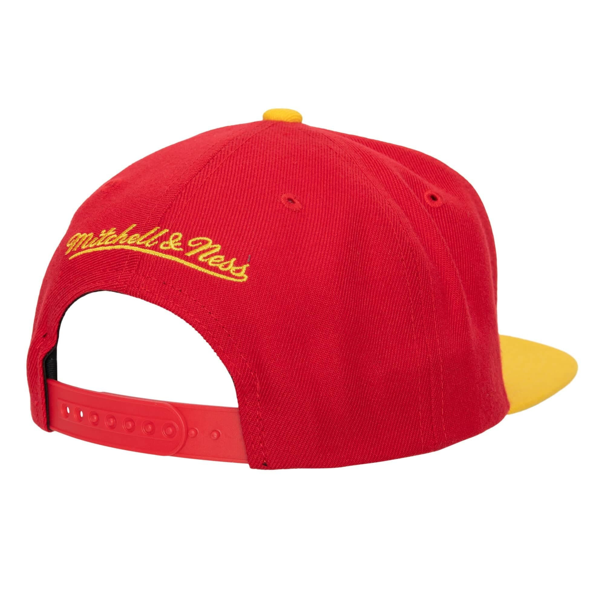 Красная бейсболка Mitchell & Ness Team 2 Tone 2.0 Snapback HWC Atlanta Hawks Hat в ретро-стиле имеет застежку-защелку сзади для регулировки, вышитый логотип команды Atlanta Hawks спереди, бренда Mitchell & Ness сзади и прямой козырек для максимального стиля. Бейсболка выполнена из 100% полиэстера с контрастной зеленой нижней частью козырька.