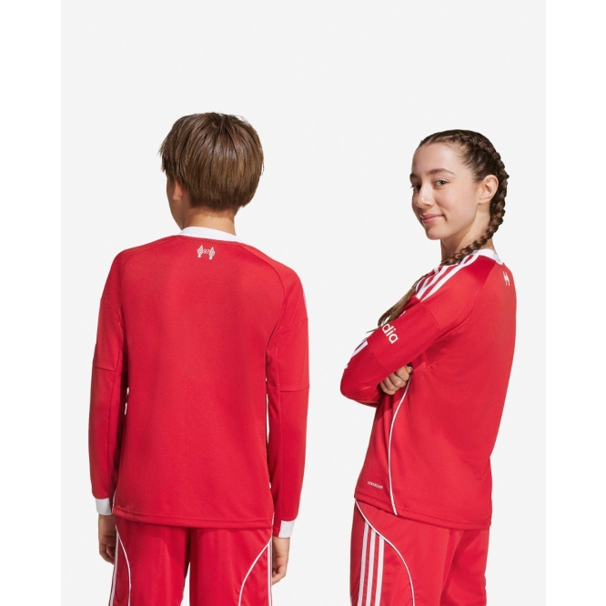 - Детский футбольный лонгслив Liverpool FC adidas Youth 25/26 Home Long Sleeve Jersey