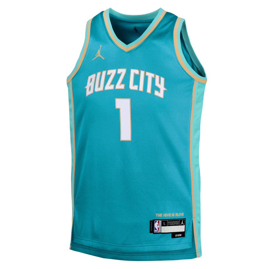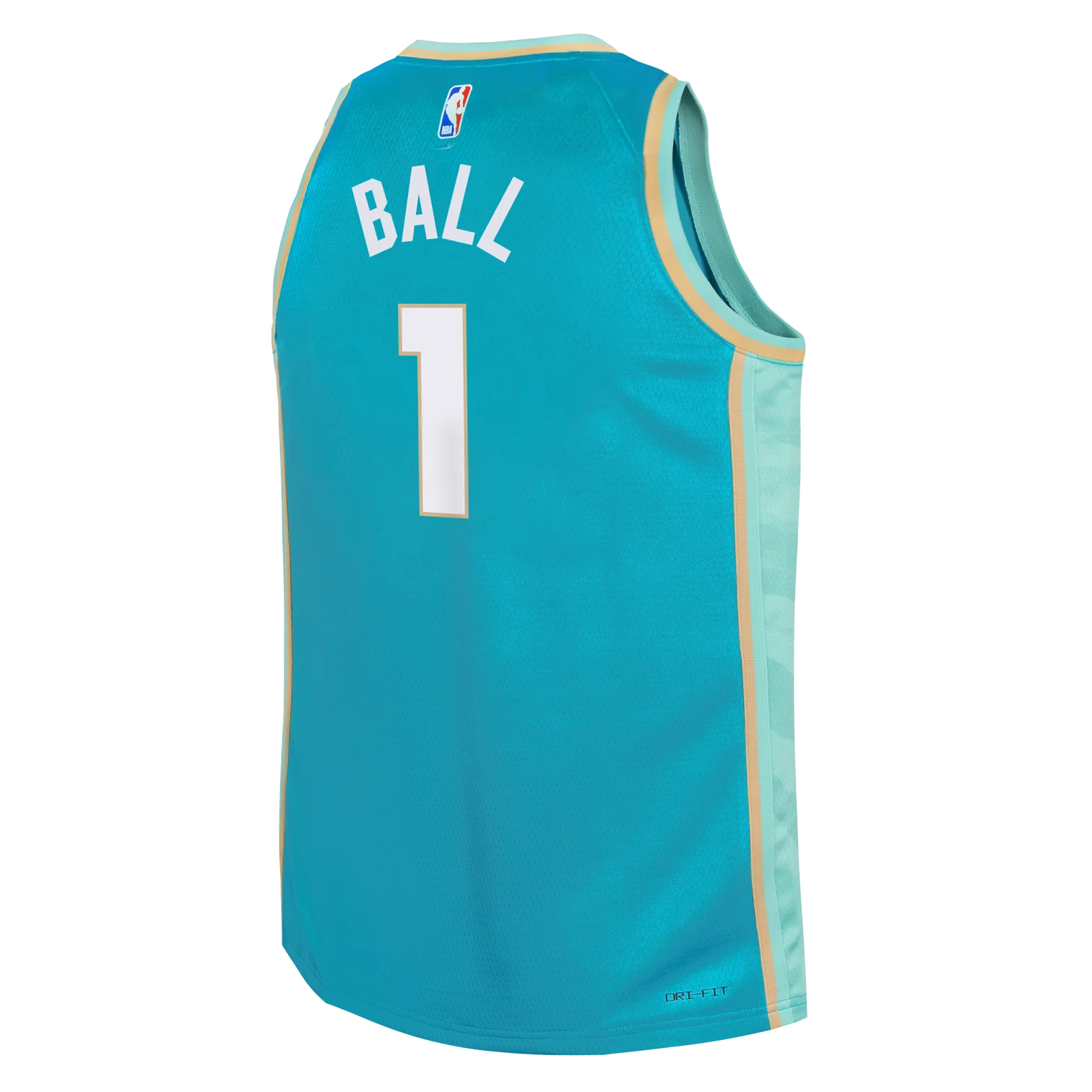 - Баскетбольная джерси 2023-24 Charlotte Hornets LaMelo Ball #1 Youth Swingman City Edition Teal Jersey