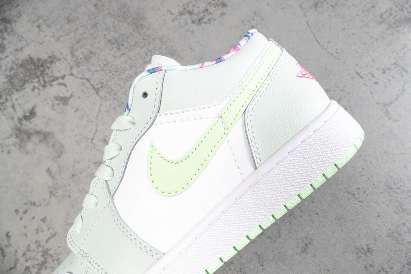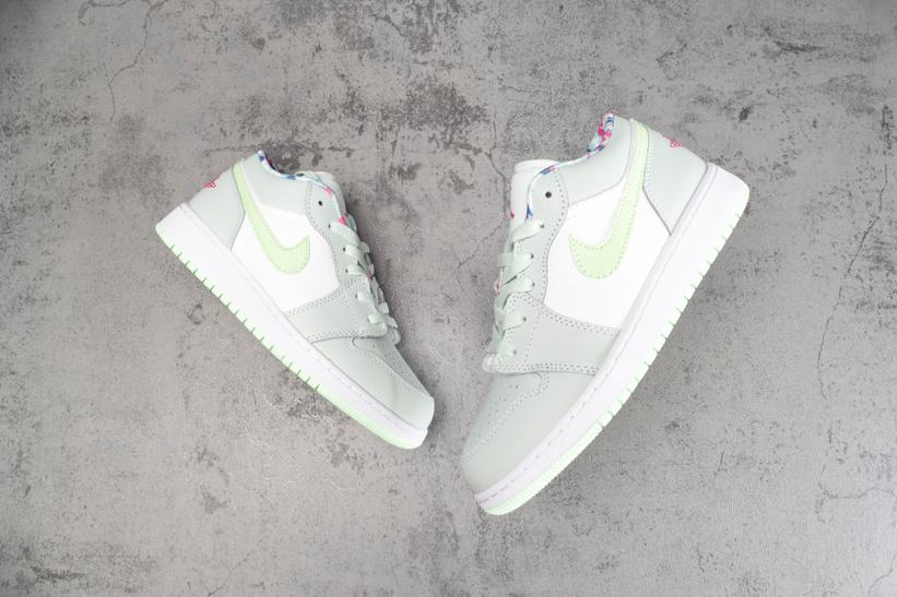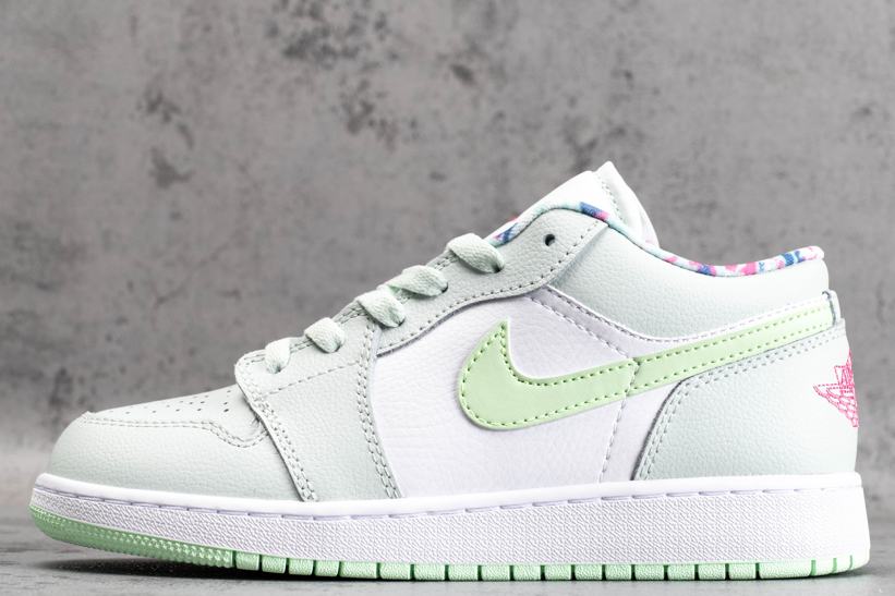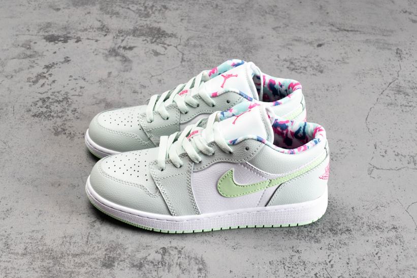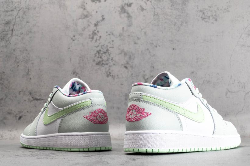 Заказать поиск кроссовок Air Jordan 1 Low GS Barely Grey Spruce с бесплатной доставкой. Кроссовки Air Jordan 1 Low GS Barely Grey Spruce- это обновленная версия выпущена в марте 2019 года, чтобы подчеркнуть весеннюю линейку AJ. Верх сочетает серые и белые детали с контрастным мятно-зеленым Swoosh и пестрой отделкой воротника. Модель Air Jordan 1 Low имеет вышитый розовый символ Jumpman на язычке и логотип Jordan Wings на пяточной части. Перфорация на носочной части кроссовок обеспечивает лучшую воздухопроницаемость. Светлая мидсоль с технологией Air и мятно-зеленая подошва с протектором завершают дизайн. Ознакомьтесь с подробными фотографиями и закажите эту расцветку Air Jordan 1 Low GS Barely Grey Spruce в розничных магазинах или в сервисе Slamdunk