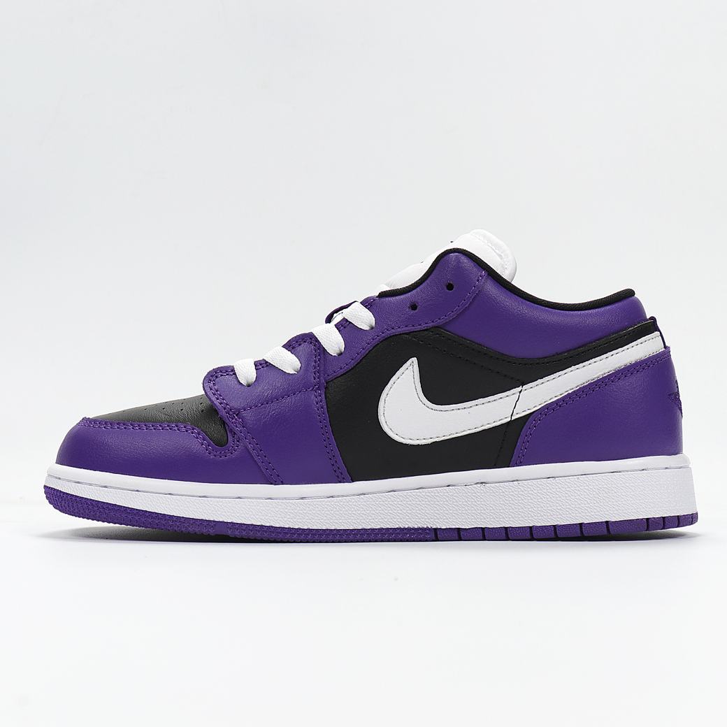 Кроссовки Air Jordan 1 Low GS Black Court Purple Цена Кроссовки Air Jordan 1 Low GS Black Court Purple - оригинальные товары спортивных брендов в интернет-магазине Слэмданк. Jordan Brand