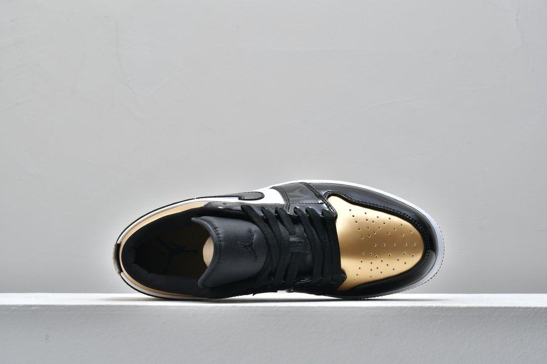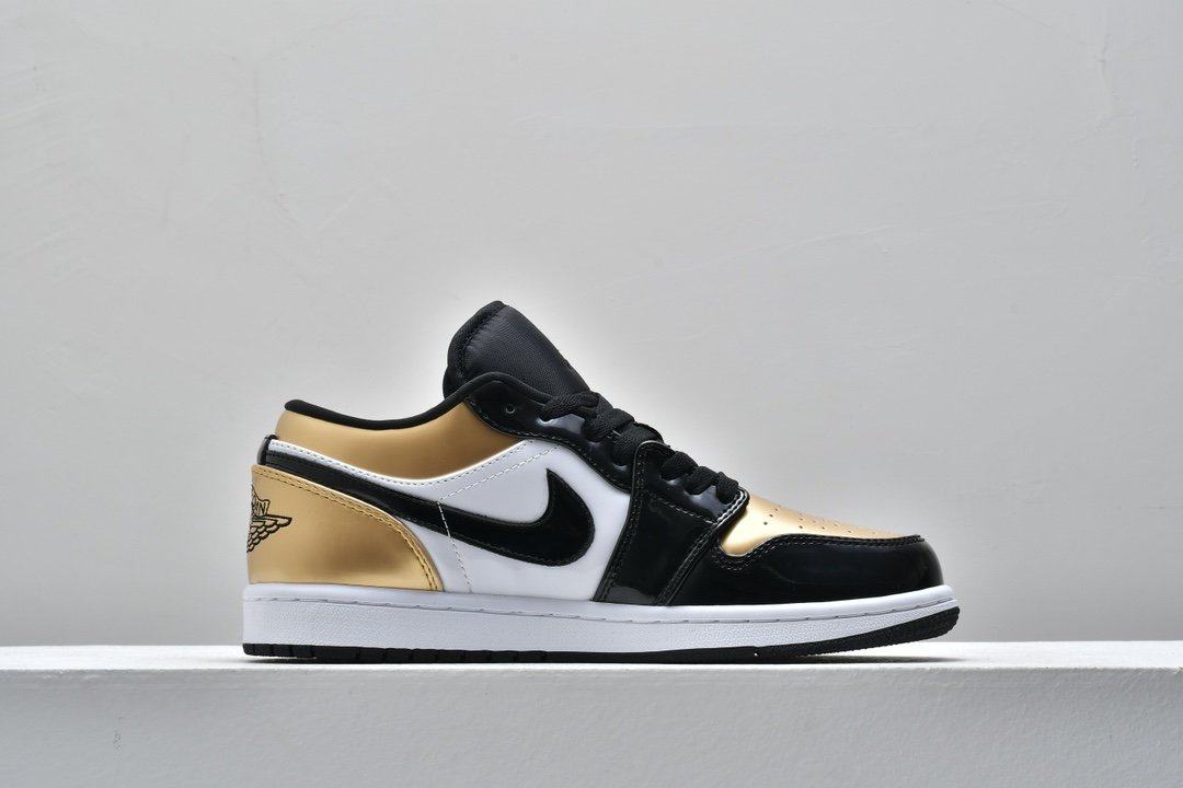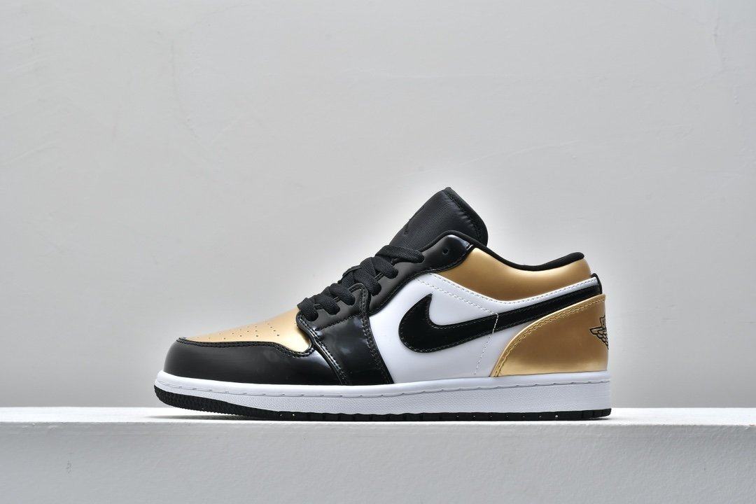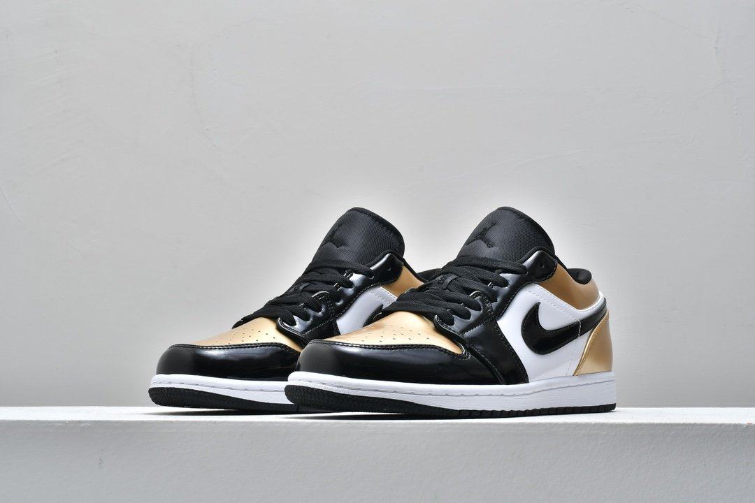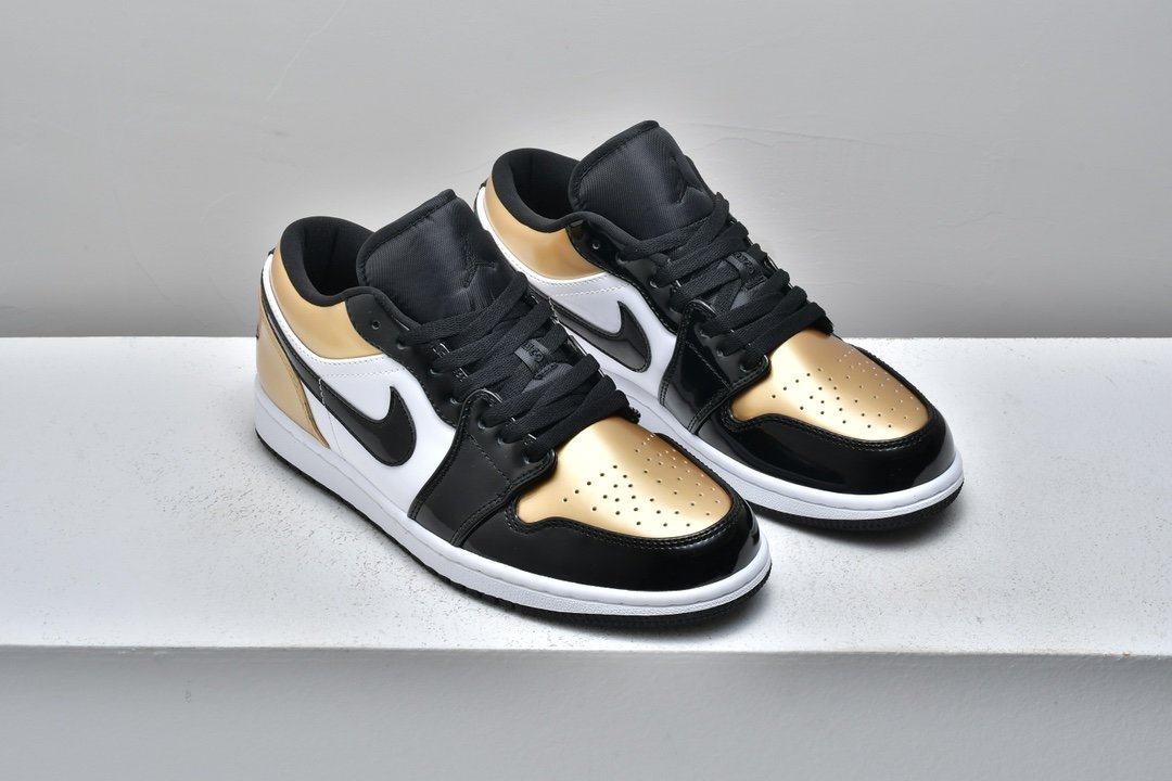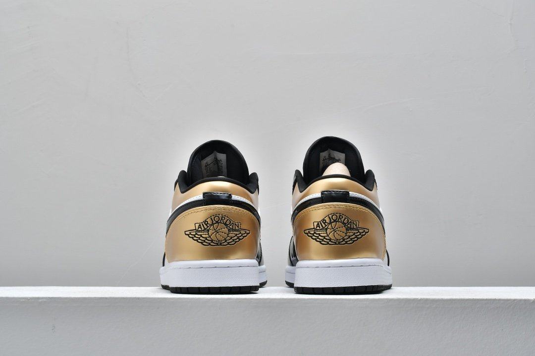 Заказать поиск кроссовок Air Jordan 1 Low GS Gold Toe с бесплатной доставкой. Появление в июле 2019 года обновленного Air Jordan 1 Low GS Gold Toe напоминает о финале НБА 1991 года.Верх классического силуэта из кожи с черным атласом Swooshes, а воротник, носок и пятка покрыты "золотом" . Модель Jordan 1 Low дополняют символом Jumpman на нейлоновом язычке и вышитый логотип Jordan Wings на пяточной части. Перфорация в носочной части кроссовок улучшает воздухопроницаемость. Белая мидсоль с технологией Air и черная протекторная подошва обеспечивает дополнительный комфорт и лучшее сцепление. Ознакомьтесь с подробными фотографиями и закажите эту расцветку Air Jordan 1 Low GS Gold Toe в розничных магазинах или в сервисе Slamdunk