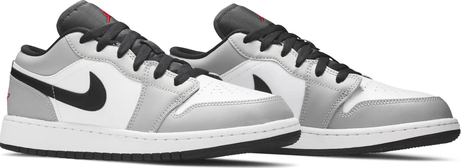 Кроссовки Air Jordan 1 Low GS Light Smoke Grey демонстрируют классический силуэт. Кожаный верх выполнен в сером цвете с черным Nike Swoosh. Перфорация носочной части обеспечивает улучшенную воздухопроницаемость. Модель Jordan 1 Low имеет символ Jumpman на нейлоновом язычке и логотип Jordan Wings на пяточной части. Белая мидсоль с технологией Air и черная протекторная подошва завершают дизайн.- Цвета: Light Smoke Grey/Gym Red/White