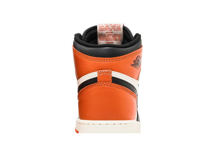 Созданная для больших детей модель Air Jordan 1 Retro High OG GS "Shattered Backboard" вдохновлена броском Майкла Джордана во время выставочной игры 1985 года в Италии. Верхняя часть кроссовок полностью выполнена из кожи и имеет белую основу с контрастными черными акцентами на накладке для глаз и передней части стопы. Оранжевая кожаная отделка использована на носочной части, пятке и воротнике, а также черная эмблема Wings на боковой стороне. Плетеная бирка Nike Air украшает черный нейлоновый язычок.