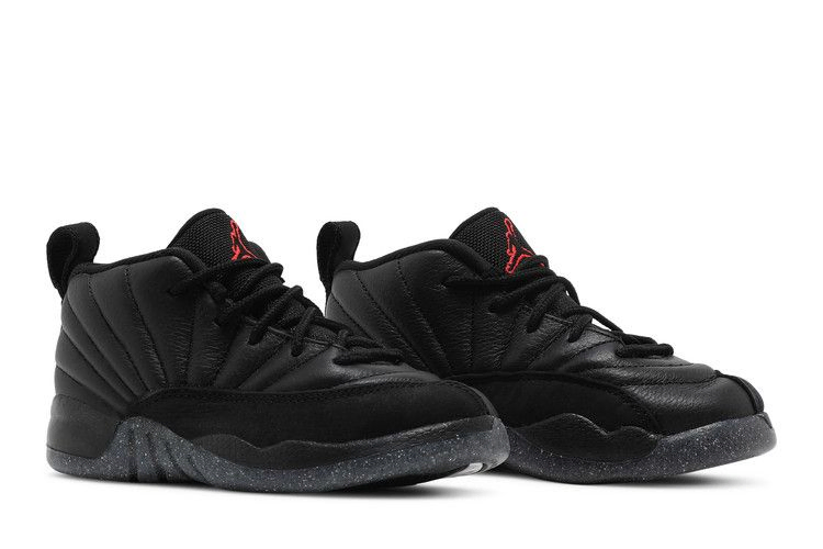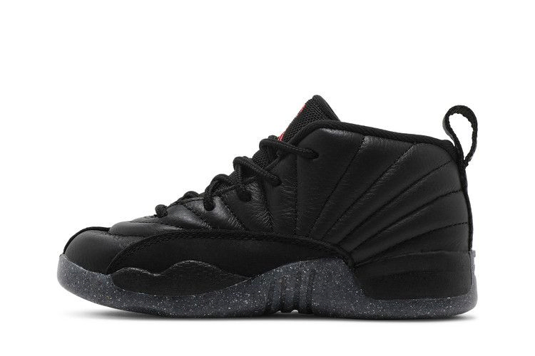 Jordan 12 Utility TD 'Grind', предлагаемые в уменьшенном размере для нового поколения поклонников MJ, представляют собой незаметную расцветку классического силуэта. Прошитый верх изготовлен из черной кожи с тональными накладками из гладкого нубука, который заменяет типичную для модели 12 кожу с текстурой ящерицы. На язычке из баллистической сетки красуется малиновый Jumpman. Кроссовки установлены на мягкую промежуточную подошву из пеноматериала, которую поддерживает резиновая подошва с крапинками, в состав которой входит 3% Nike Grind - переработанные материалы, полученные из отходов производства и отслужившей свой срок обуви.