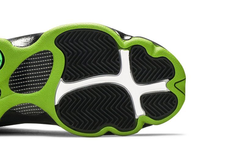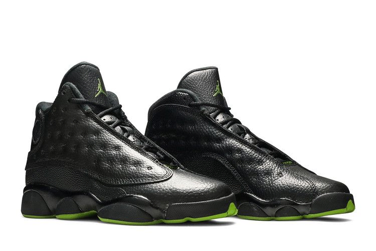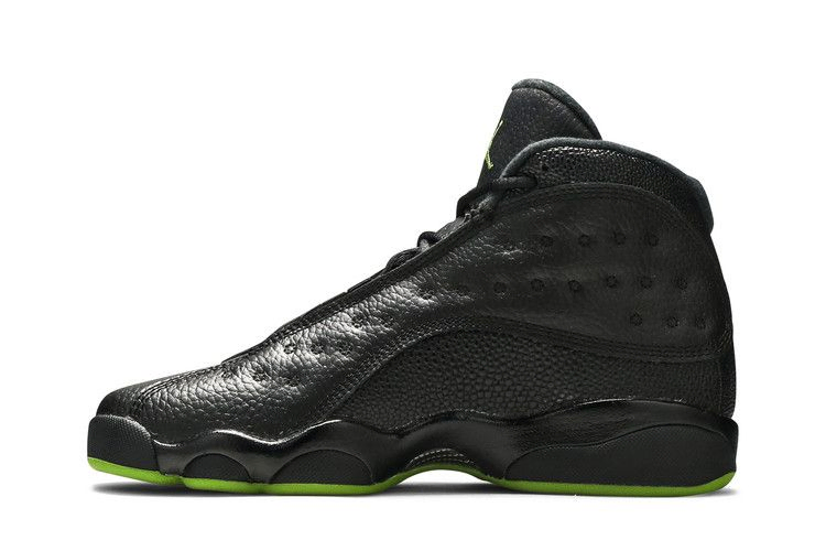Изначально выпущенные в 2005 году, а затем переизданные в 2010 году, эти Air Jordan 13 'Altitude' были выпущены как раз к праздничному сезону 2017 года. В отличие от предшественника 2010 года, который был выполнен из сетки, Air Jordan 13 Retro GS 'Altitude' 2017 имеет черный кожаный верх. Кроссовки также могут похвастаться текстурированными накладками на боковых панелях и деталями Altitude Green на логотипе Jumpman на язычке, фирменном голограммном логотипе на пятке и сцепной подошве.