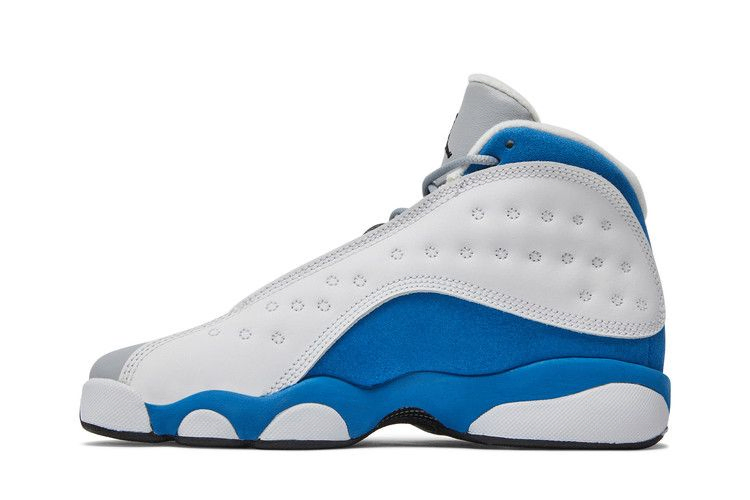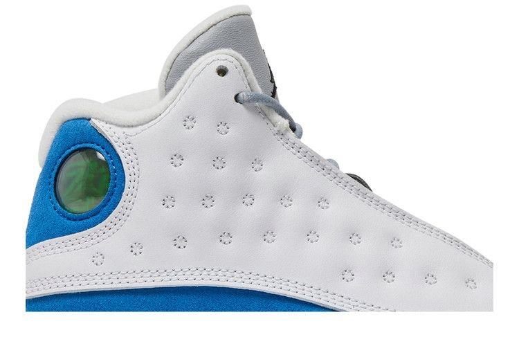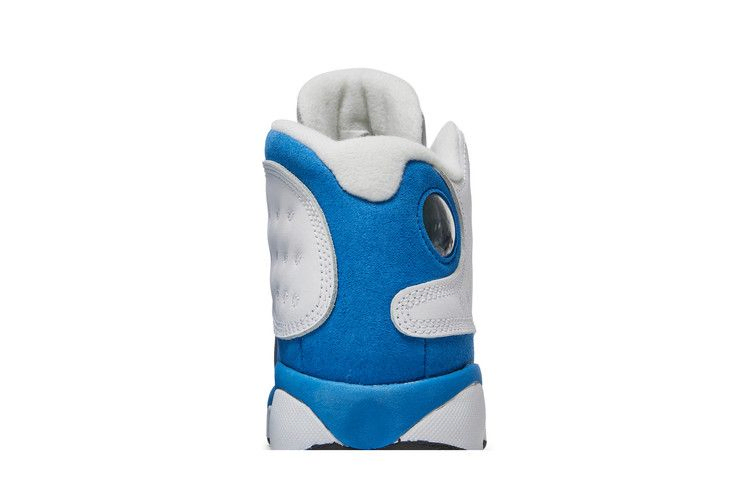 Компания Nike выпустила классическую модель Air Jordan 13 исключительно в школьном размере. Модель Air Jordan 13 Retro GS "Italy Blue" имеет белый кожаный верх, носок и язычок цвета Wolf Grey, а также акценты из бисера на боковых панелях. Кроссовки также украшены замшей цвета Italy Blue на пятке и боковой стороне, черной вышивкой Jumpman на языке и знаковым зеленым логотипом с голограммой на лодыжке.