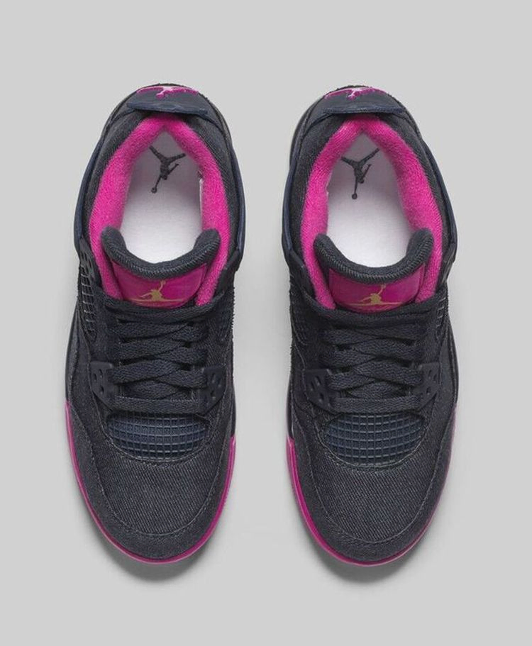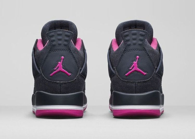 Эти Air Jordan 4 Retro, предлагаемые исключительно в размерах для девочек, имеют темно-синюю джинсовую ткань на верхней части. Ткань из хлопковой саржи дополнена традиционными деталями AJ4, включая литые люверсы, сетку на четверти и удлиненный язычок на пятке, выполненные в соответствующем оттенке синего. Яркий розовый цвет контрастирует с тканым язычком, подкладкой, логотипом Jumpman на пятке и подошвой.