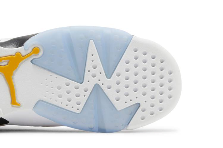 Созданные для больших детей, Air Jordan 6 Retro GS "Yellow Ochre" имеют цветовое решение, вдохновленное моделью "Carmine", и выполнены из смешанного материала с основой из желтого нубука и накладками из белой галтованной кожи. Фирменные детали AJ6 остались нетронутыми, включая формованный язычок с двумя отверстиями, задник в виде спойлера и неопреновый чехол для шнурков с вышитым брендом Jumpman. Второй логотип Jumpman украшает заднюю часть пятки. Легкая межподошва из пеноматериала дополнена подошвой из полупрозрачной резины.