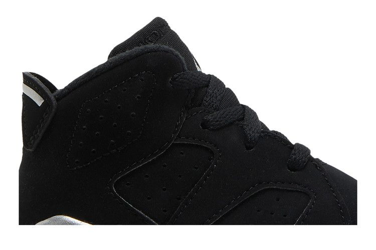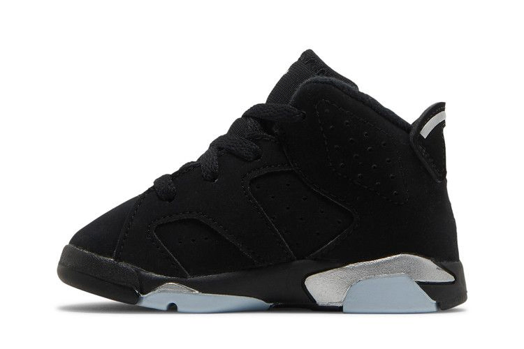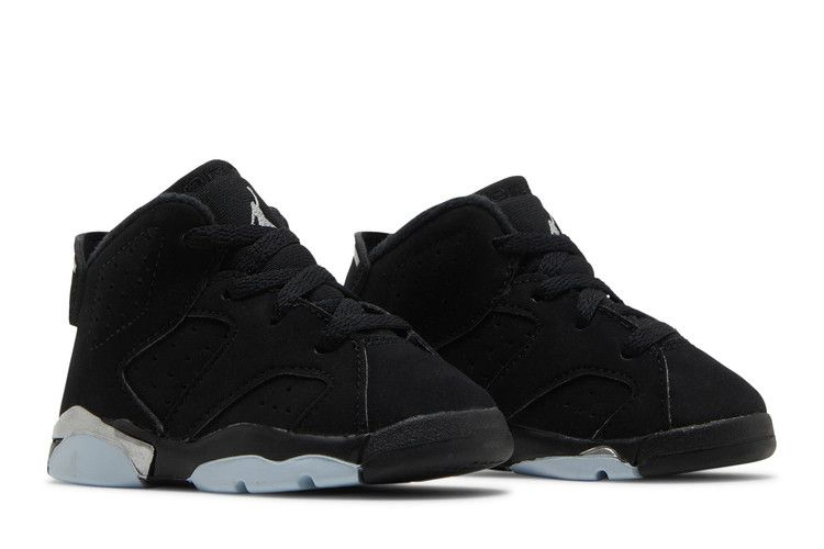 Модель Air Jordan 6 Retro TD 'Chrome' представляет собой сжатую версию силуэта, который носил Майкл Джордан, когда завоевал свой первый титул чемпиона НБА. Как и в случае с чемпионской расцветкой, эта пара имеет многослойный верх из черного синтетического нубука. Контрастные серебристые металлические акценты украшают язычок с логотипом Jumpman, формованный выступ на пятке и мягкую подошву из пеноматериала. Подошва из немаркой резины обеспечивает надежное сцепление для растущих ног.