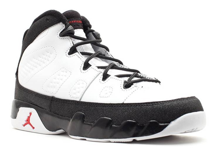 После ухода Майкла Джордана на пенсию в 1993 году Тинкер Хэтфилд разработал Air Jordan 9 как оду прогрессу, достигнутому Jordan Brand в покорении сердец поклонников кроссовок во всем мире. В 2010 году бренд Jordan выпустил ретро-расцветку ставшей классической модели. Air Jordan 9 Retro 2010 отличается верхом из белой кожи с перфорацией вдоль боковых панелей и черными деталями на пятке и воротнике. Кроссовки также могут похвастаться эластичной системой шнуровки и цветом University Red на элементах бренда.