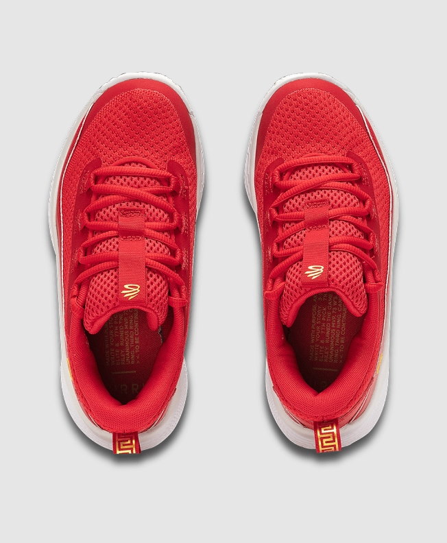 Созданный для дошкольников, Curry Flow 8 PS «Китайский Новый год» звенит в год быка с яркой красной отделкой по всему трикотажному текстилю и верху из синтетической кожи. Личный логотип Стефа Карри украшен металлической золотой вышивкой на боковой части пятки, которая сочетается с дополнительными золотыми акцентами на двойных язычках кроссовок. Легкая конструкция установлена на отформованной под давлением межподошве из EVA, которая обеспечивает мягкую амортизацию.- Цвета: Red/White/Red