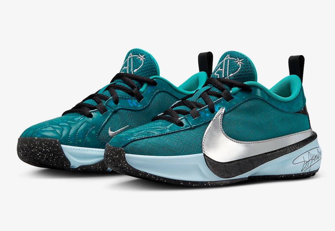 Станьте обладателем яркого стиля в кроссовках для подростков Nike Zoom Freak 5 GS All-Star. Эти кроссовки имеют бирюзовый верх, дополненный серебристыми и черными акцентами, что обеспечивает отличный внешний вид. Приготовьтесь ощутить максимальный комфорт и быстрое реагирование благодаря передовой технологии амортизации Zoom Air. Идеально подходящие как для повседневных прогулок, так и для интенсивных игр, эти кроссовки органично сочетают в себе стиль и функциональность, что делает их универсальным дополнением к любой коллекции.- Цвета: Geode Teal/Metallic Silver/Black/Glacier Blue