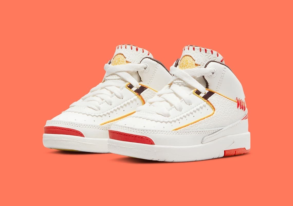 Модель Maison Château Rouge x Air Jordan 2 ‘United Youth International’ воссоединяет Jordan Brand с парижским брендом, возглавляемым дизайнером Юссуфом Фофаной. Этот специальный выпуск AJ2 входит в капсульную коллекцию, вдохновленную африканским влиянием и молодежной культурой парижского района Château Rouge. Верхняя часть модели выполнена из белой кожи с ручными стежками, перфорацией в стиле броги и оранжевыми накладками из нубука на носочной и пяточной частях. Желтый логотип Wings украшает язычок, а несовпадающие выступы на пятке демонстрируют логотип Nike на левой стороне обуви и брендинг Maison Château Rouge на правой. Внутри стельки находится изображением Его Воздушества в полете.