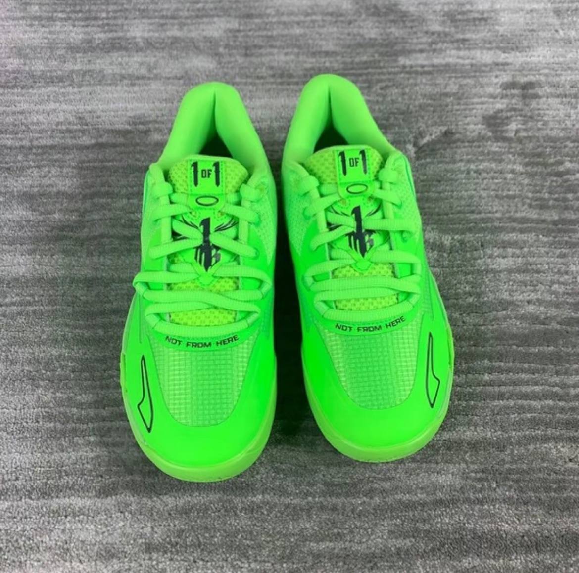 Для последней модели LaMelo Ball бренд Puma вернулся к оригиналу. MB.01 Volt передает электрическое присутствие феномена би-бола на корте в ярком зеленом цвете. Эстетику дополняют космические технологии PUMA Hoops, в том числе пена NITRO, обеспечивающие внеземные характеристики.