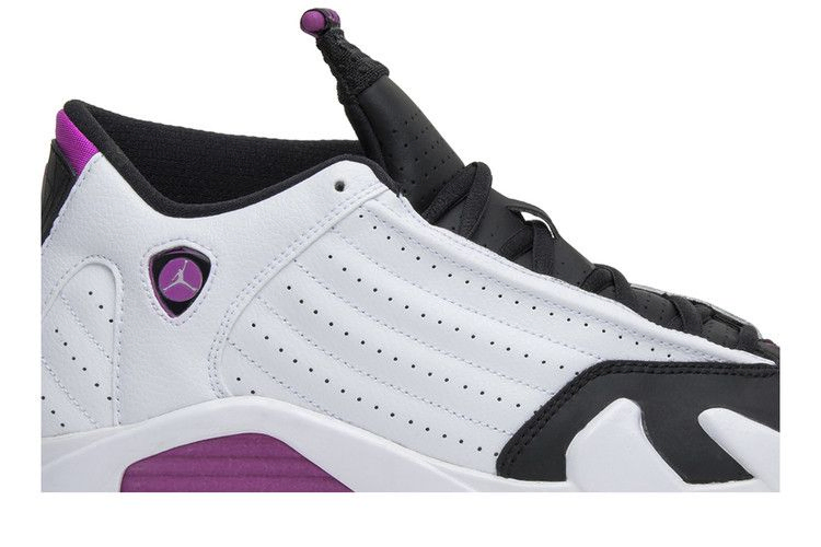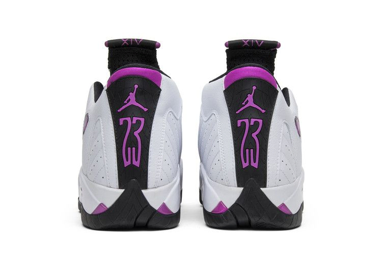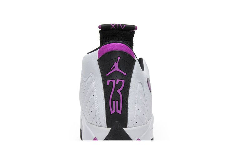 Air Jordan 14 GS 'Fuchsia Blast' имеют белый кожаный верх, черные носок, язычок и внутреннюю часть, а также со вкусом подобранный цвет фуксии по всему кроссовку. Эта эксклюзивная женская модель создана по мотивам культовой модели "Black Toe" с аналогичной цветовой схемой и фирменным логотипом в виде щита на лодыжке.