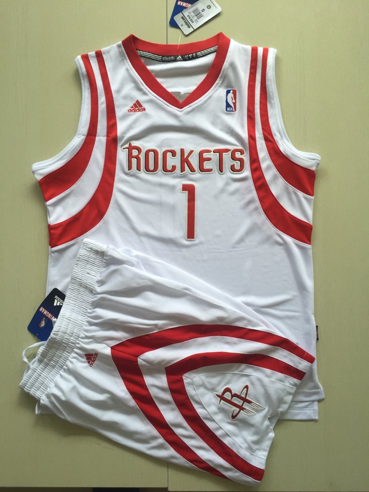 Баскетбольная форма Houston Rockets с символикой Трейси МакГрейди в белой и красной расцветках. На спине наклеены номер 1 и фамилия McGrady. На груди инициалы команды Rockets и номер 1.- Материалы: полиэстер