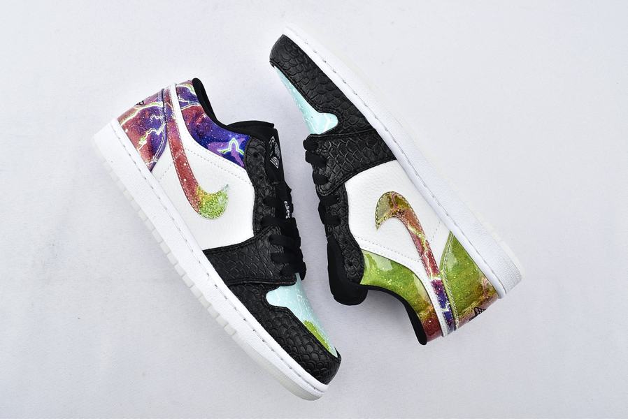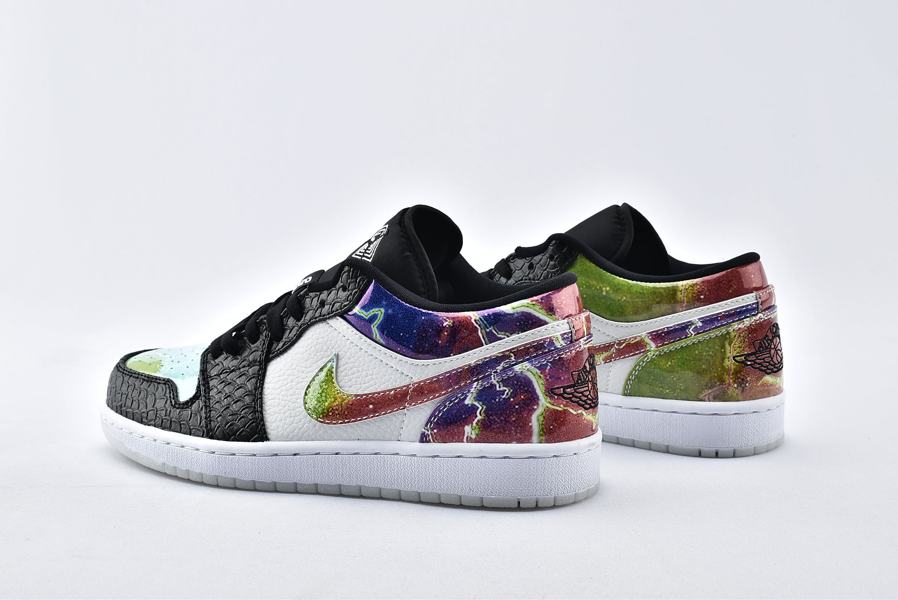 Заказать поиск кроссовок Air Jordan 1 Low Galaxy с бесплатной доставкой. Модель Air Jordan 1 Low Galaxy имеет яркий необычный дизайн, что сразу превратило ее в хай-топ. Кроссовки имеют необычную комбинированную отделку из черной, белой и цветной кожи, отделанную язычком с мягкой подкладкой и закрепленную поверх текстурированной белой мидсоли. Логотип Air Jordan «Wings», заимствованный из воротника версии с высоким верхом, находится на пятке. Ознакомьтесь с подробными фотографиями и закажите эту расцветку Air Jordan 1 Low Galaxy в розничных магазинах или в сервисе Slamdunk