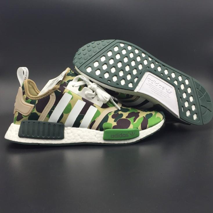Кроссовки NMD R1 Bape Olive Camo - коллаборация эстетичной японской марки Bape с тематическим стилем adidas Originals. Цветовое решение модели задано фирменным камуфляжем BAPE с оттенками зелёного.- Цвета: Olive