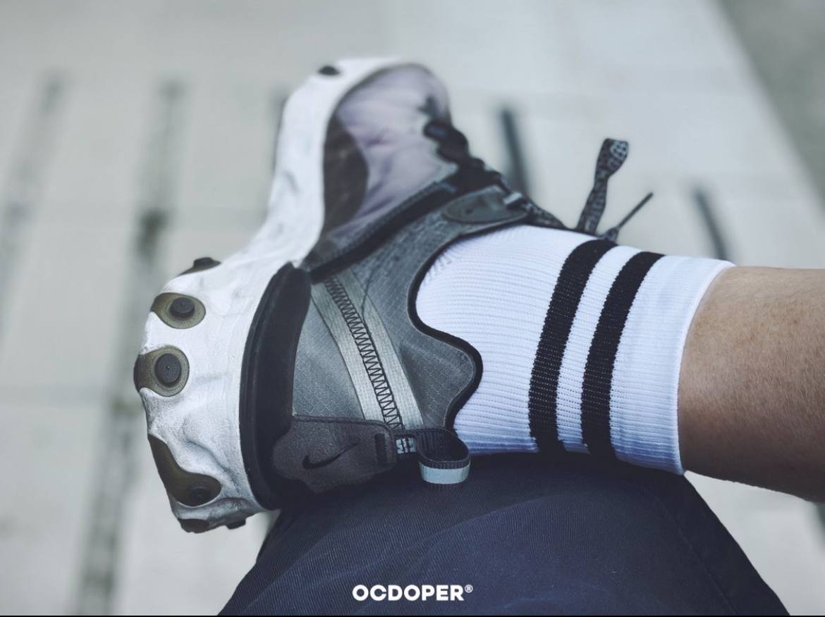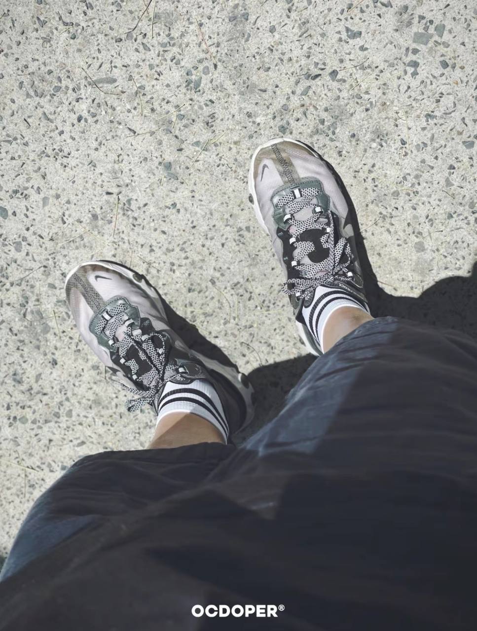 Nike React Element 87 «Антрацит», разработанный с учетом городской среды, отличается контрастной цветовой гаммой чистого черного и белого. Он отличается полупрозрачным верхом, изготовленным из полупрозрачного текстиля TPE, с логотипом Swoosh с низкой посадкой, который сливается с мидсолью и увенчан волнистой системой шнуровки для бега по пересеченной местности, изготовленной из кожи, замши и светоотражающих деталей. Широкая мидсоль React оснащена полупрозрачными черными вставками, которые продолжаются под ногами для сцепления.- Цвета: Anthracite/Black-White