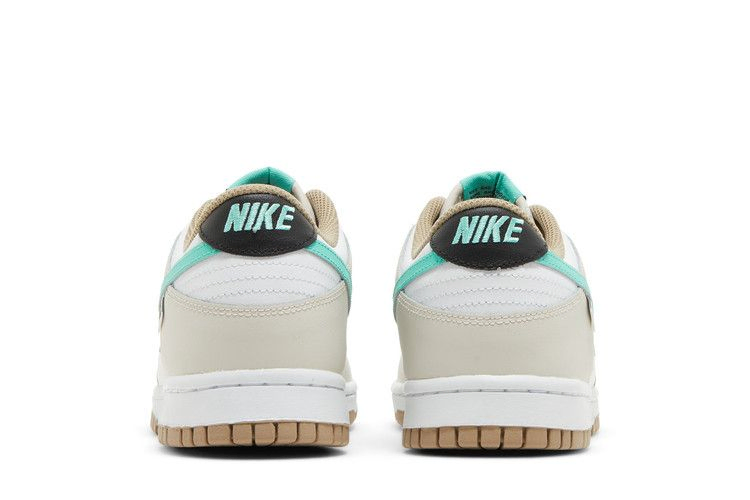 Созданные для больших детей, Nike Dunk Low GS 'Split' привносят цветовые акценты в смешанный материал. Верхняя часть сочетает в себе накладки из кожи цвета загара с белой основой из кожи и текстиля рипстоп. Контрастный мятно-зеленый цвет украшает литые шнурки и фирменный брендинг Swoosh с прикрепленным лейблом Nike на боковой стороне. Кроссовки установлены на резиновую подошву с белыми боковыми стенками и бежевой резиновой подошвой.