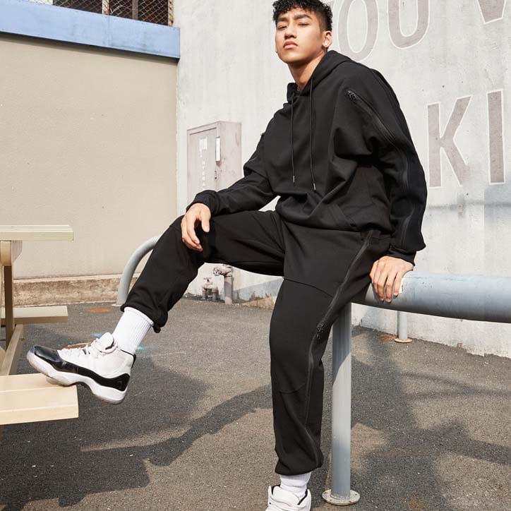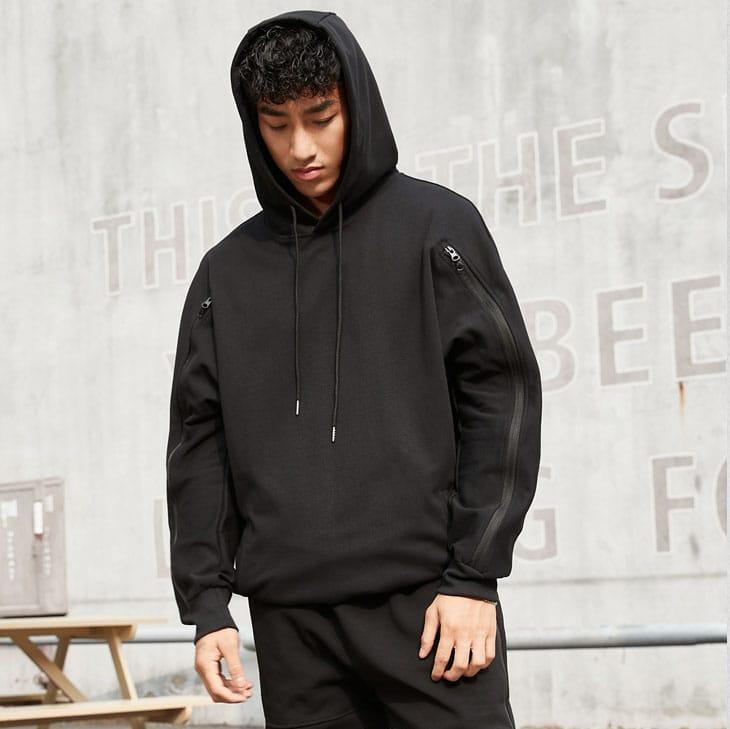 Худи Ehot DMPL Zip Black Hoodie черного цвета отличается стильным и лаконичным дизайном. Утепленный капюшон на шнурке можно надевать для тренировки в прохладный день. Необычный вид толстовке придают контрастные вставки на молнии на рукавах, которые можно скрыть.