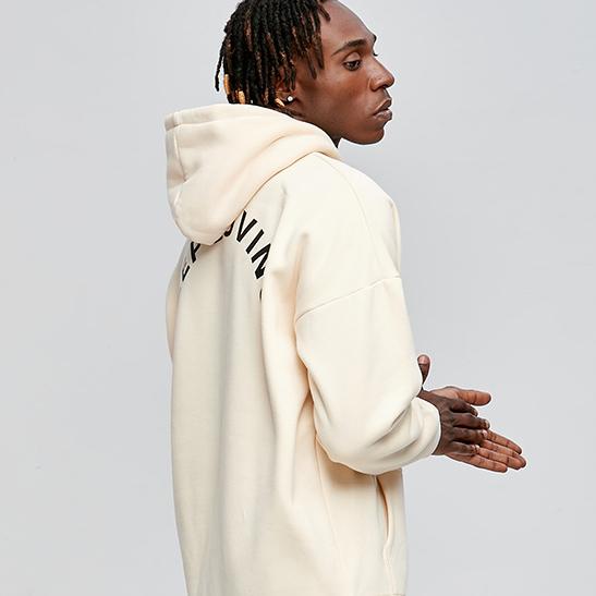 Худи Ehot Loving Beige Hoodie однотонное светло-бежевого цвета отличается лаконичным дизайном с графичным черным принтом на груди, а также надписью на спине. Утепленный двойной капюшон на шнурке удобно надевать для тренировки в прохладный день. Вместительный накладной карман-кенгуру в передней части дополняет образ.