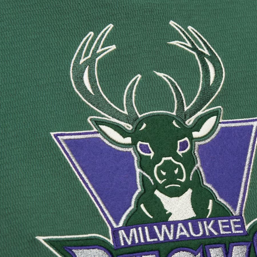 Заказать худи Mitchell & Ness Green Milwaukee Bucks Vintage Logo Thermal Lightweight Pullover Hoodie доставкой.