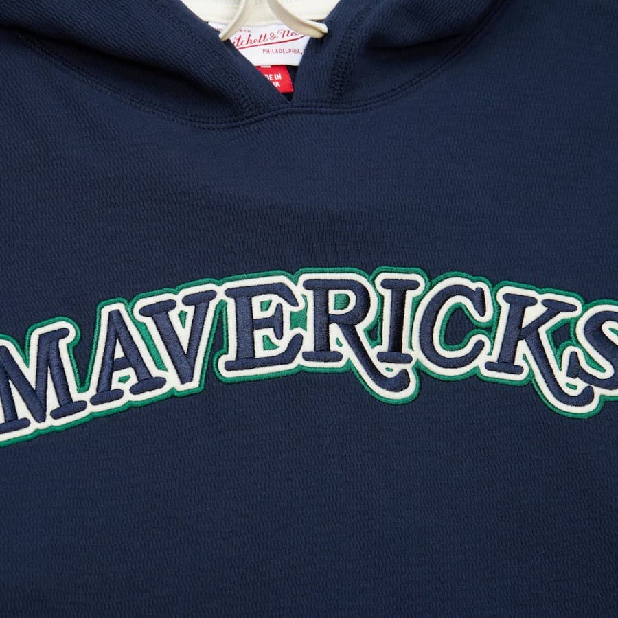 Заказать худи Mitchell & Ness Navy Dallas Mavericks Vintage Logo Thermal Lightweight Pullover Hoodie доставкой.