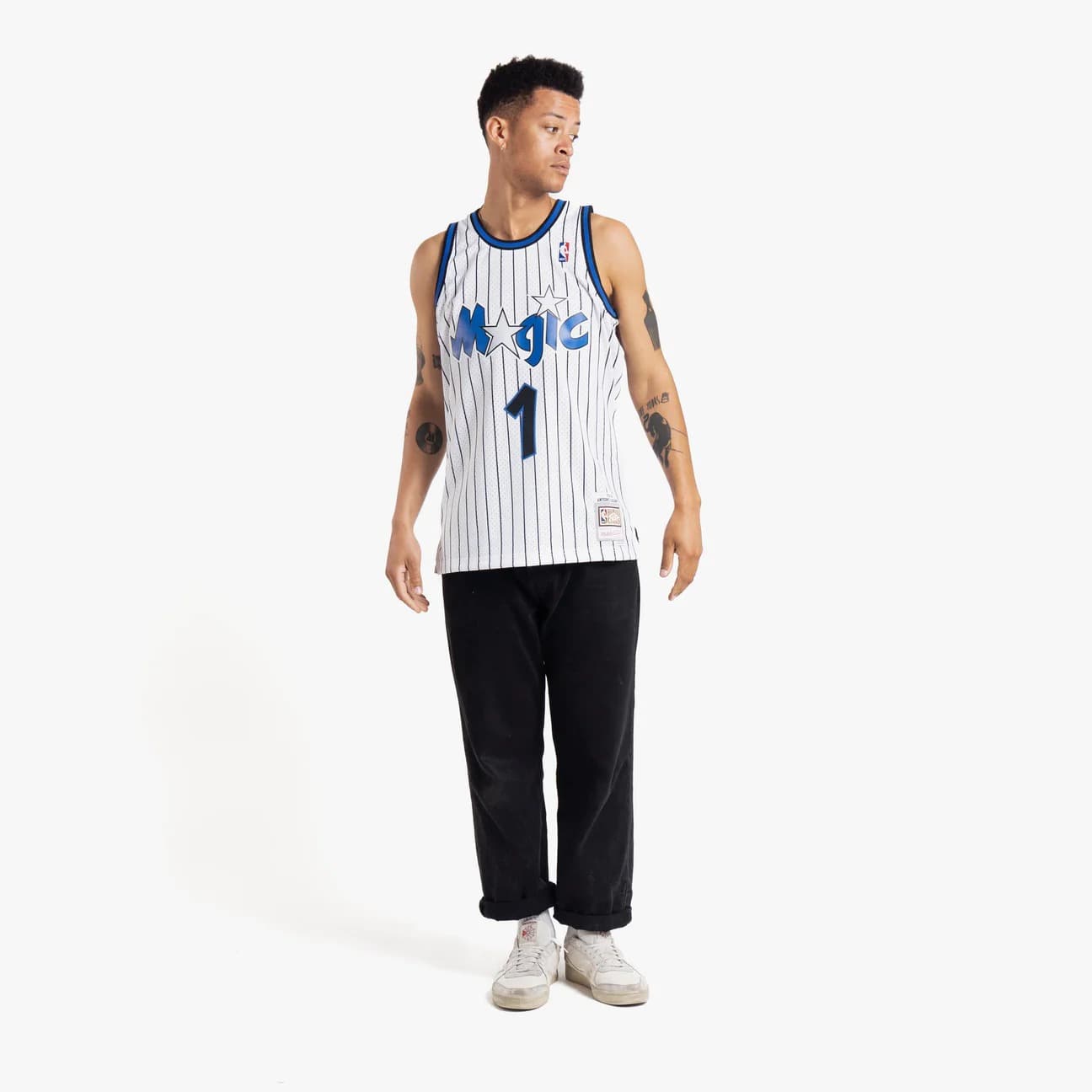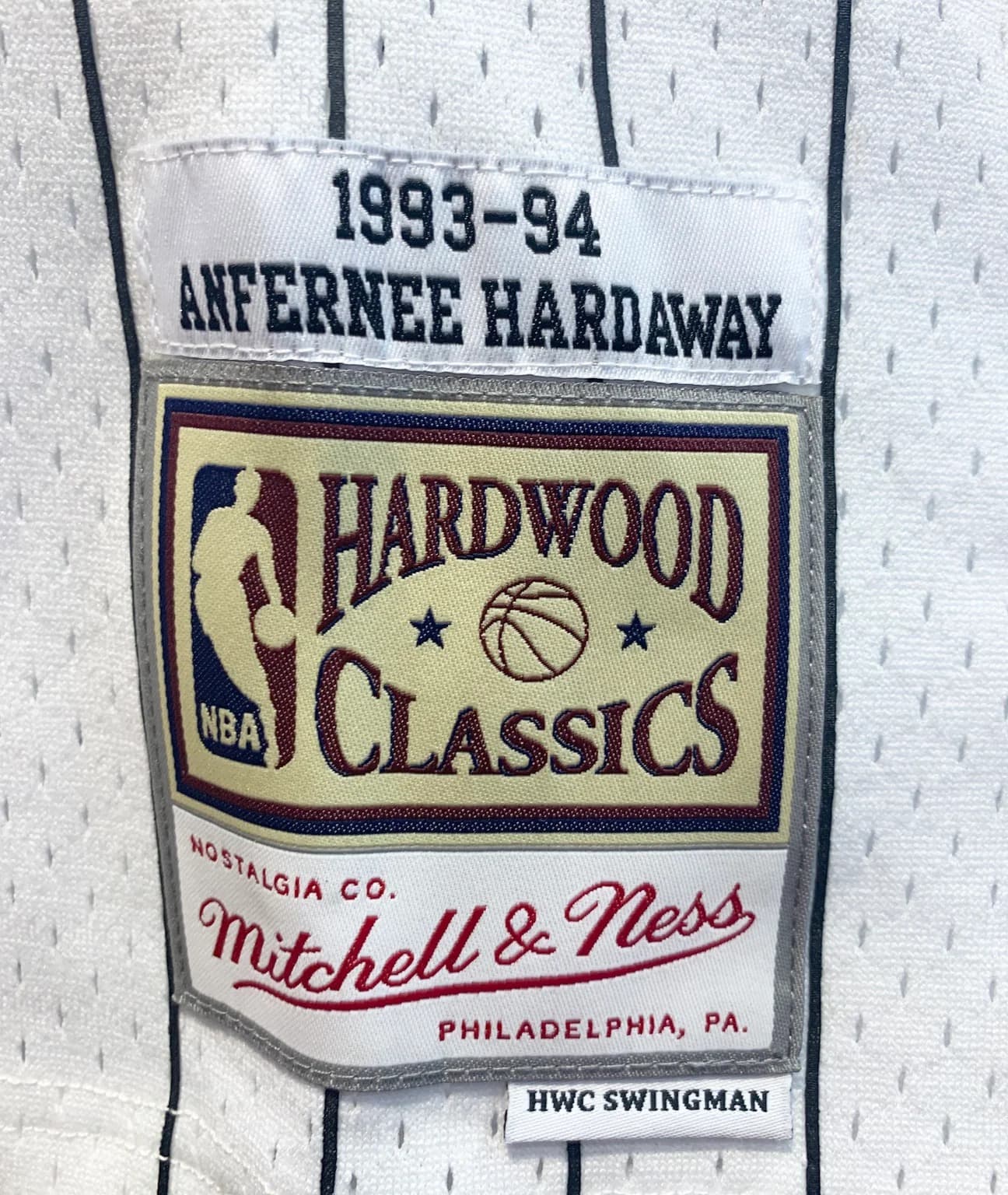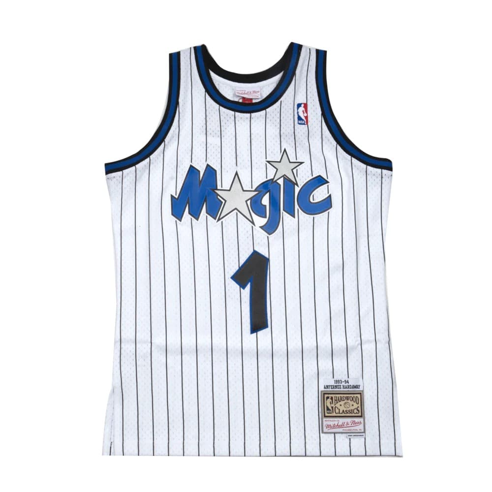 - Баскетбольная джерси 1993-94 Orlando Magic Penny Hardaway #1 Swingman Hardwood Classics White Pinstripes Jersey