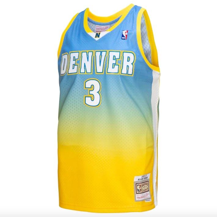 - Баскетбольная джерси 2006-07 Denver Nuggets #3 Allen Iverson Mitchell & Ness Fadeaway Yellow/Blue Jersey
