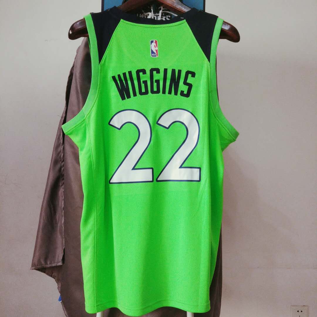 Зелёная расцветка джерси баскетбольного игрока Эндрю Уиггинса из команды Миннесота Тимбервулвз. Издание Statement Edition сезона 2017-18 гг. Название команды впереди с именем и номером игрока Wiggins на обороте.- Качество: swingman