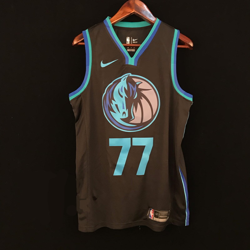 Антрацитовая расцветка джерси баскетбольного игрока Луки Дончича из команды Даллас Маверикс. На груди номер 77 и лого команды. Издание City Edition 2019 года.- Качество: swingman