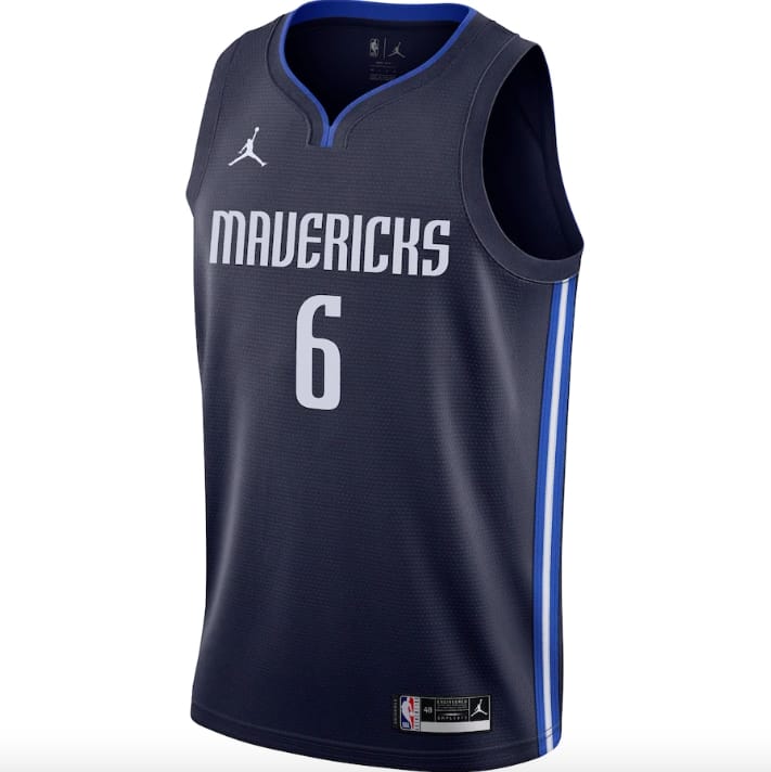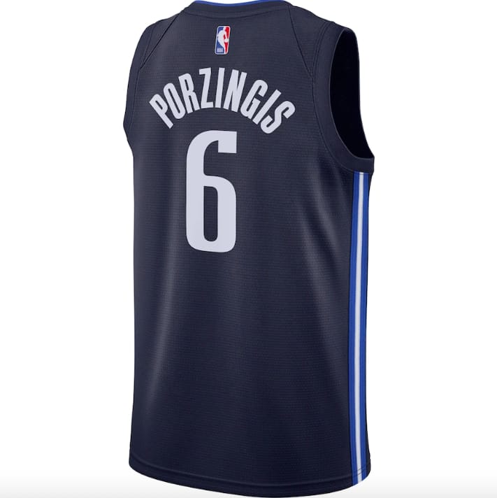 - Баскетбольная джерси 2020-21 Dallas Mavericks #6 Kristaps Porzingis Jordan Statement Navy Jersey