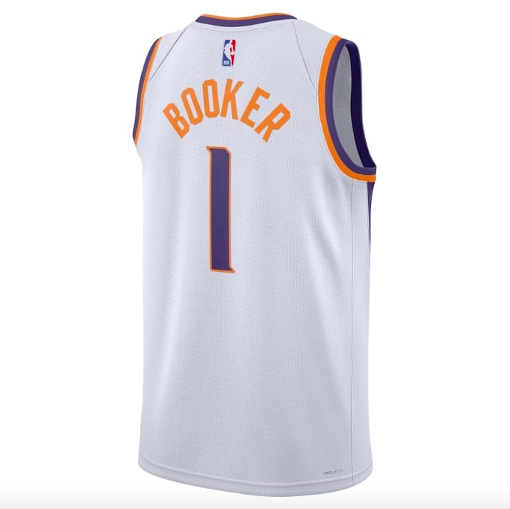 - Баскетбольная джерси 2022-23 Phoenix Suns #1 Devin Booker Swingman Association White Jersey