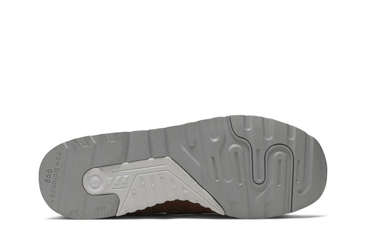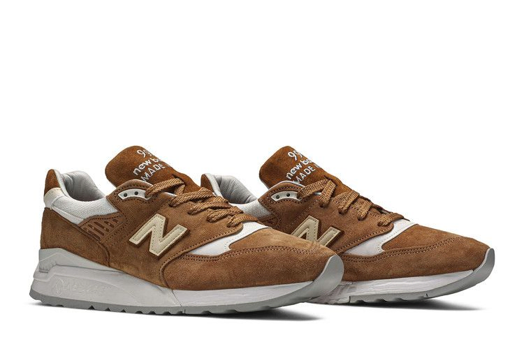 Эти New Balance 998 берут коричневую расцветку "Curry" и применяют ее в верхней части, используя нейтральные оттенки и замшу премиум-класса. Белая межподошва с технологией Abzorb добавляет контраста.