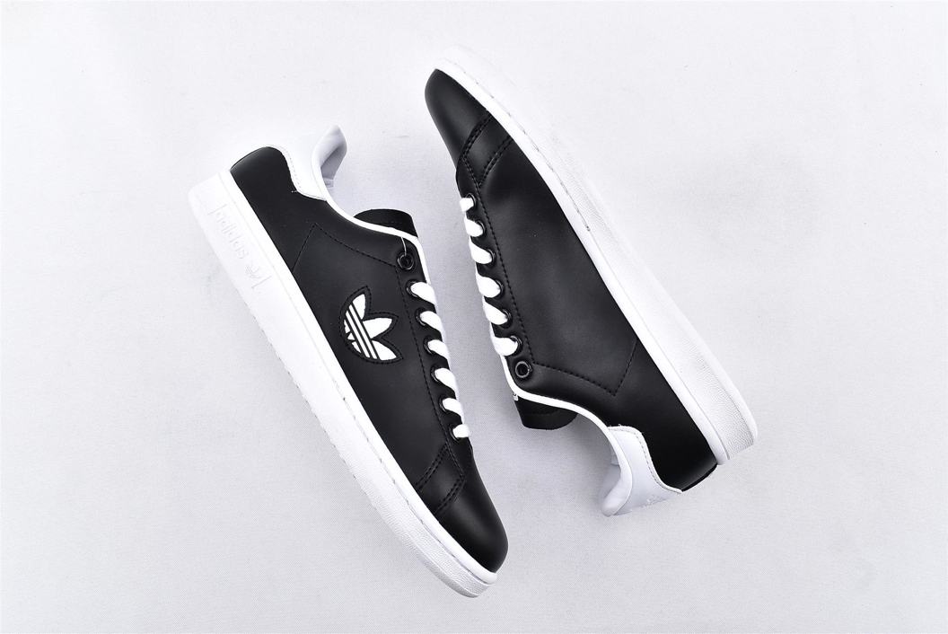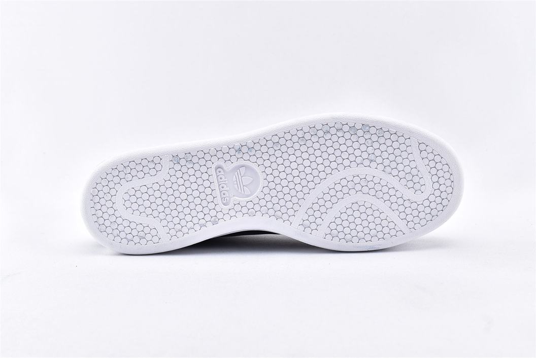 Вечный Стэн Смит, созданный Хорстом Дасслером в 1965 году, когда-то был известен как Роберт Хайлет. В поисках более сильного внедрения в США бренда adidas, он обратился за поддержкой к теннисному профессионалу Смиту. Обе звезды тенниса разделяли модель с лицом Смита на языке обуви и автографом Хайе на боку до 1978 года. В марте 2019 года была выпущена эта минималистская модель, с черным кожаным верхом и контрастной белой кожаной стойкой, фирменным языком, а также логотипом трилистника сбоку. Кроссовки также имеют мягкую пятку, прочный носок и белоснежную резиновую подошву.- Цвета: Core Black/Cloud White/Core Black