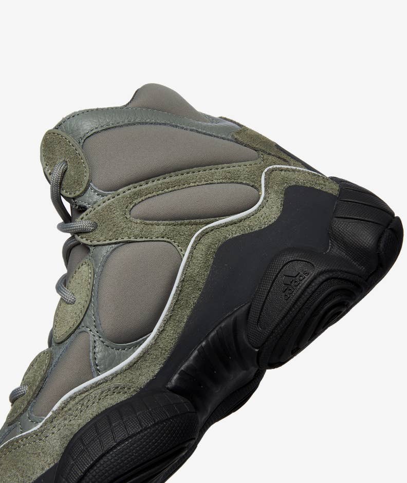 Adidas Yeezy 500 High 'Mist' представляет собой сдержанную цветовую гамму силуэта в стиле ретро, который заимствует элементы из модели KB8 3 Коби Брайанта, созданной по образцу амортизирующей технологии бренда Feet You Wear. Сверху серый эластан усилен накладками из замши и кожи в тон, которые раскрывают легкий зеленоватый оттенок. Светоотражающая окантовка подчеркивает волнистые линии брызговика, а серая резиновая накладка обеспечивает дополнительную прочность. Подходящая серая мидсоль adiPRENE + обеспечивает амортизацию и плавность хода.- Цвета: Mist/Mist/Mist