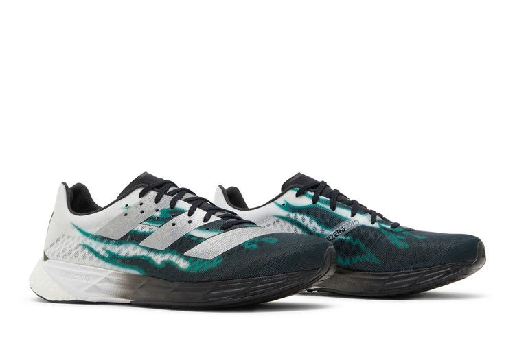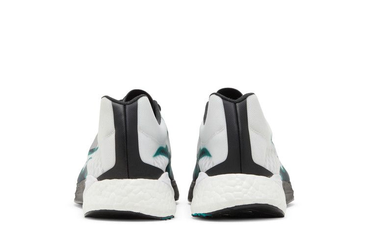 Модель adidas Adizero Pro BM "Green Flame" из серии "Runners High Pack" имеет цвета и графику, создающие ощущение скорости. В кроссовках используется бесшовный текстильный верх с большими трехполосными полосами и графикой пламени в черно-зеленых тонах. Легкая конструкция установлена на промежуточную подошву Lightstrike, выполненную в градиентном черно-белом цвете и оснащенную амортизацией Boost в пятке. Карбоновая пластина Carbitex создает ощущение движения вперед, а резиновая подошва Continental обеспечивает превосходное сцепление.