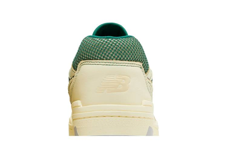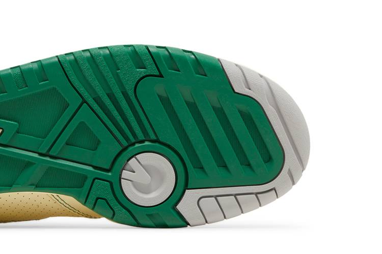 Модель Aimé Leon Dore x New Balance 550 'Classic Pine' взята из капсульной коллекции, вдохновленной нью-йоркским спортзалом Masaryk Community Gym. Эта пара имеет кожаный верх желтого цвета с контрастной зеленой строчкой на каждой панели. Зеленая сетка используется на воротнике и фирменном логотипе "N", в то время как внутренняя часть отделана зеленым текстилем. Двойной брендинг присутствует на тканом язычке и задней части пятки. Модель установлена на прочную резиновую подошву с пожелтевшими боковыми стенками и открытым клином из пеноматериала на медиальной стороне.
