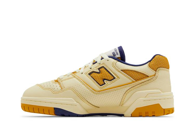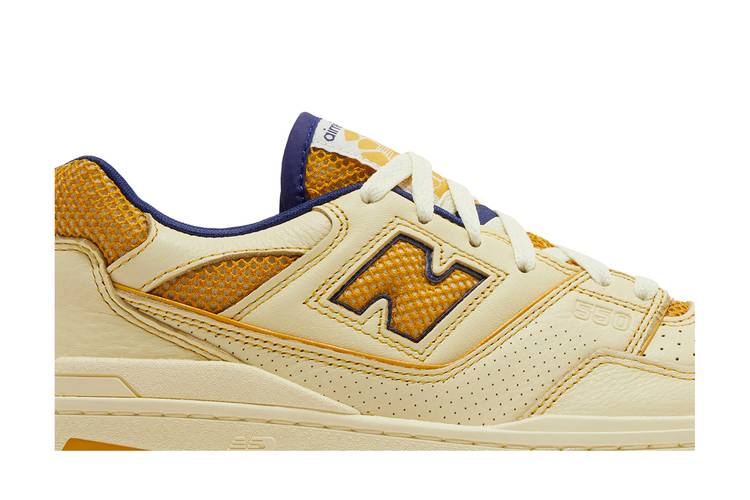 Модель Aimé Leon Dore x New Balance 550 'Dawn Glow' создана в рамках капсульной коллекции, вдохновленной нью-йоркским спортзалом Masaryk Community Gym. Отражая корни силуэта 80-х годов, модель имеет многослойный кожаный верх нежно-желтого оттенка. Внутренняя отделка выполнена из текстиля цвета морской волны, а воротник и логотип "N" украшены желтой сеткой. Двойной брендинг украшает тканый язычок и заднюю часть пятки. Кроссовки дополнены желтой промежуточной подошвой с открытой танкеткой из EVA на медиальной стороне.