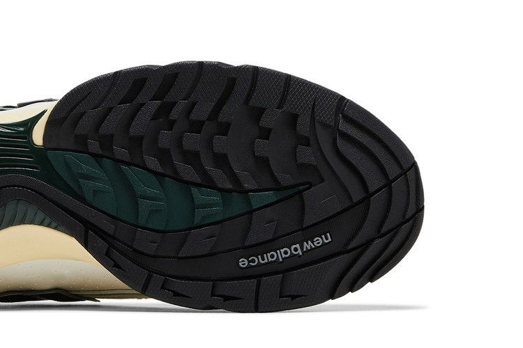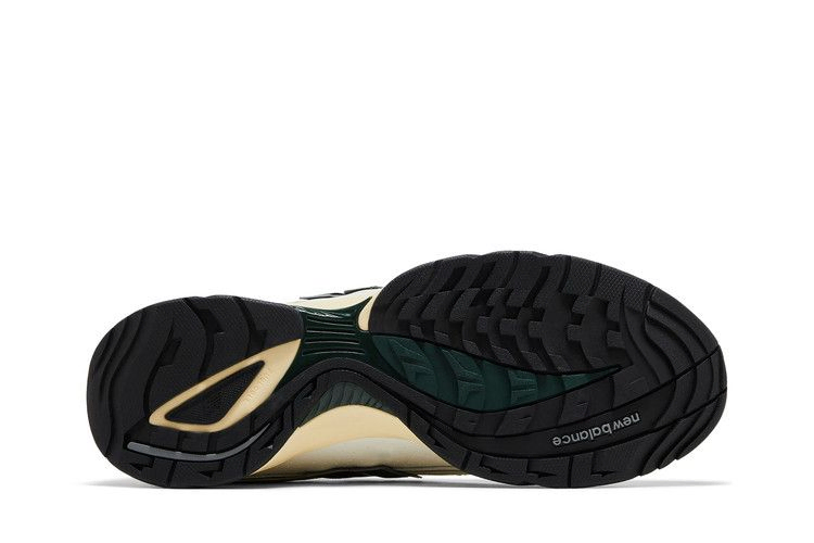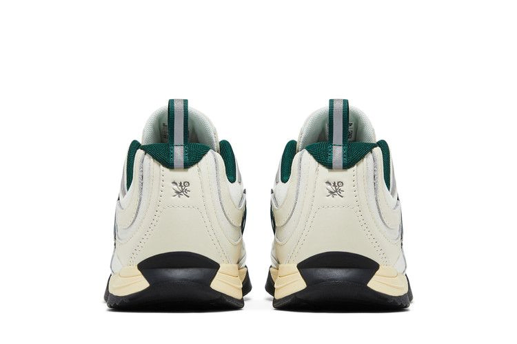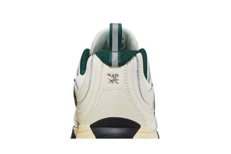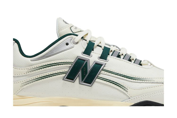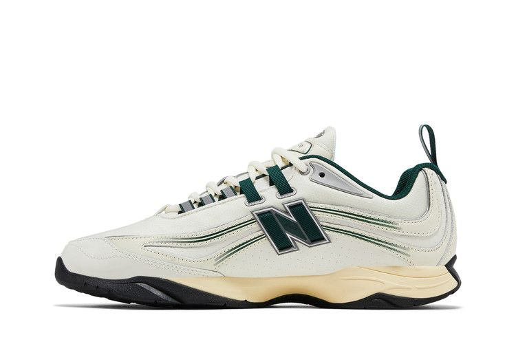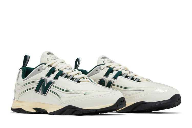 Модель Aimé Leon Dore x New Balance RC56 'Pristine', выпущенная в рамках совместной коллекции из трех предметов, представляет собой новый силуэт, вдохновленный кроссовками для бега по пересеченной местности начала 2000-х годов. Верхняя часть кроссовок, выполненная из нейлоновой моно сетки и перфорированной кожи, имеет тонкий белоснежный цвет. Тональные кожаные накладки украшены дугообразными зелеными линиями, сочетающимися с текстильной подкладкой воротника и фирменным логотипом 'N'. Двойной брендинг украшает язычок и полиуретановый носок, а гребень ALD Queens красуется на задней части пятки.